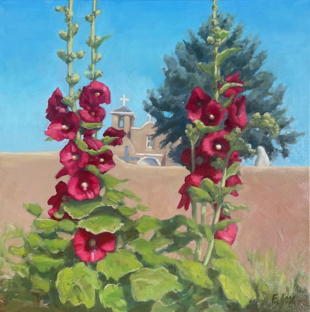Hollyhocks at the church